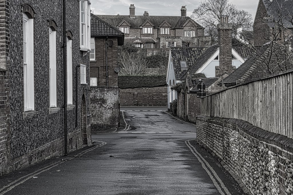 …late evening, an Aldeburgh alleyway how I saw it. When over photo editing can become a bit of a Frankenstein.